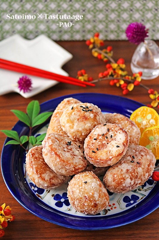 材料(6個分) 1. さといも(450g)をレンチンしてマッシュ 600wで3分、裏返してさらに3分くらい~ 皮ごとレンチンして芯まで柔らかくなったら熱いうちに皮をむく 2 …