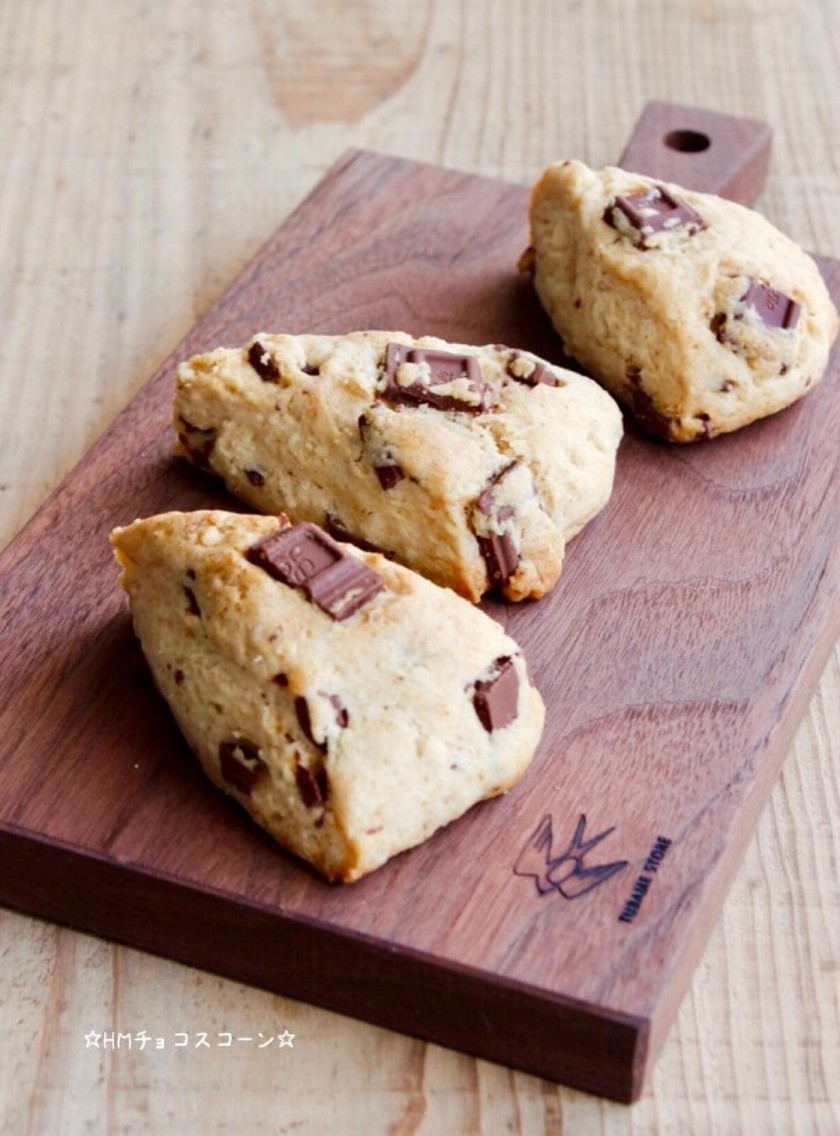 ・ホットケーキミックス 200g ・バター 50g ・牛乳 45ml ・板チョコレート 1枚 1. チョコを適当な、大きさに刻んで 2. ボールにホットケーキミックスをいれ、柔らか …