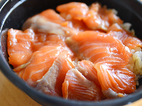・めんつゆ ・ごま油 刺身用のサーモン切り身を、味がしみるまで漬けておくだけ