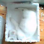 右のは発泡スチロールにはまって爆睡するアオタ