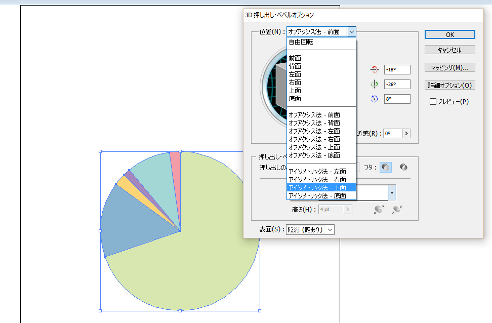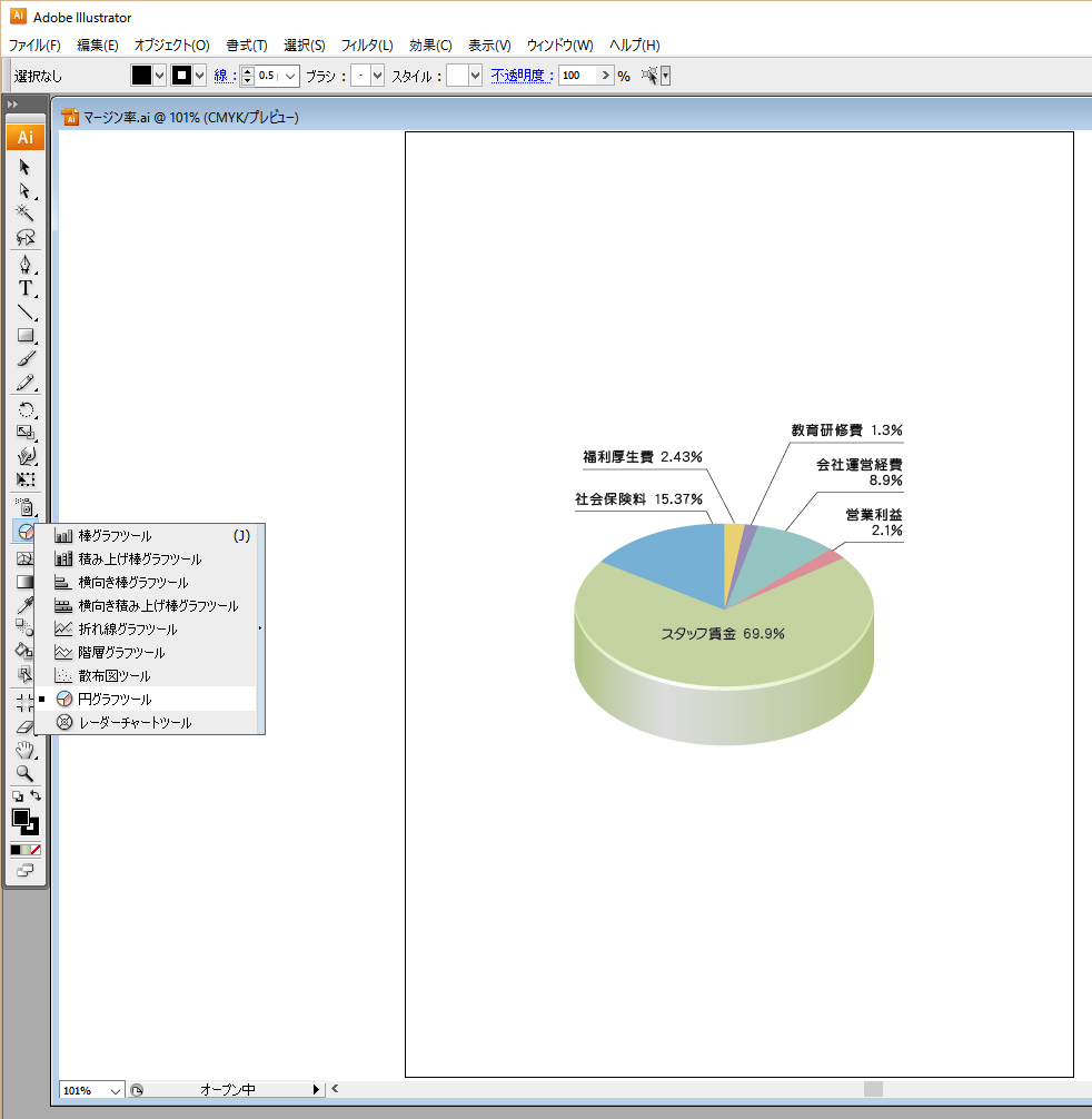 まずはイラレのグラフツールから円グラフを選択。
